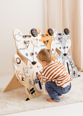 Das Busy Board Fox Naturel ist ein von der Montessori-Pädagogik inspiriertes Aktivitätsbrett, das Spaß macht und Spaß macht. Durch den Umgang mit den verschiedenen Objekten auf dem Flipchart kann das Kind selbstständig seine Umgebung durch Tasten, Hören und Sehen entdecken. Das Busy Board Fox Naturel begleitet das Kind nach seinen Bedürfnissen und ermöglicht ihm, seine kognitiven Funktionen zu entwickeln. Neugierig und ständig auf der Suche nach neuen Herausforderungen, werden die Mini-Entdecker von diesem lustigen und umweltfreundlichen Holzspiel begeistert sein.