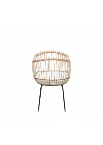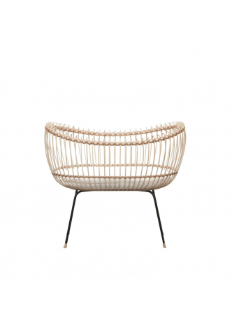 - Rotin naturel, cuir tanné naturel, pieds en métal